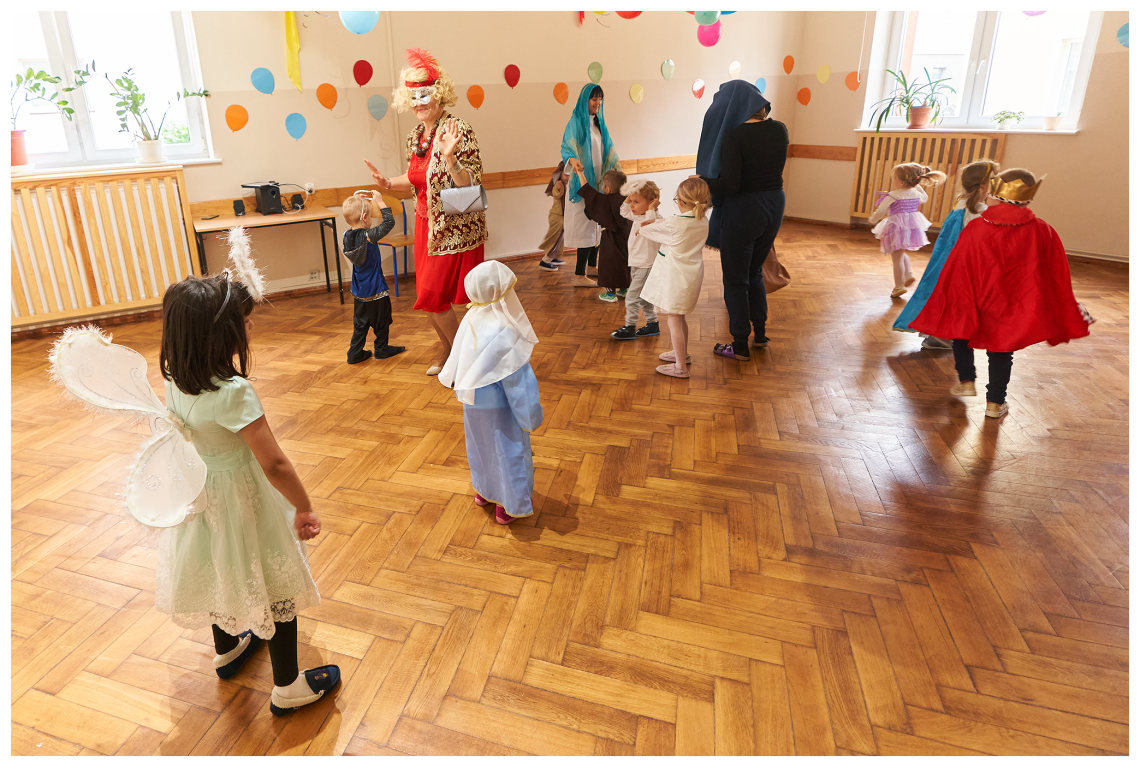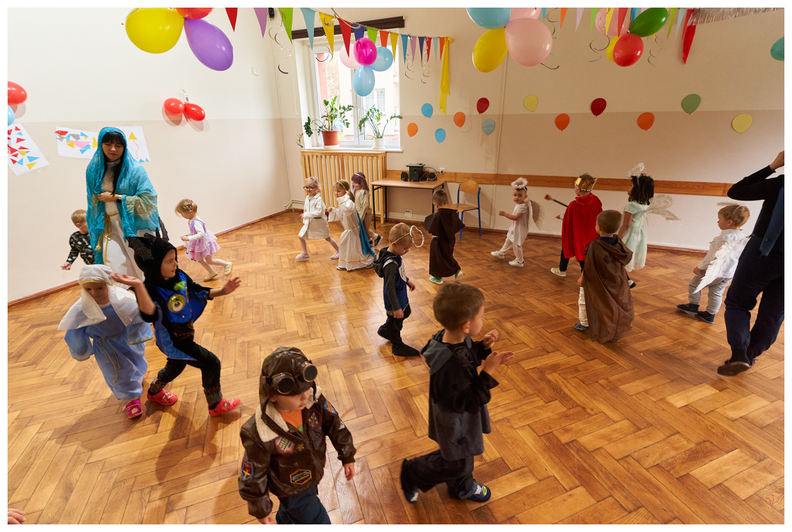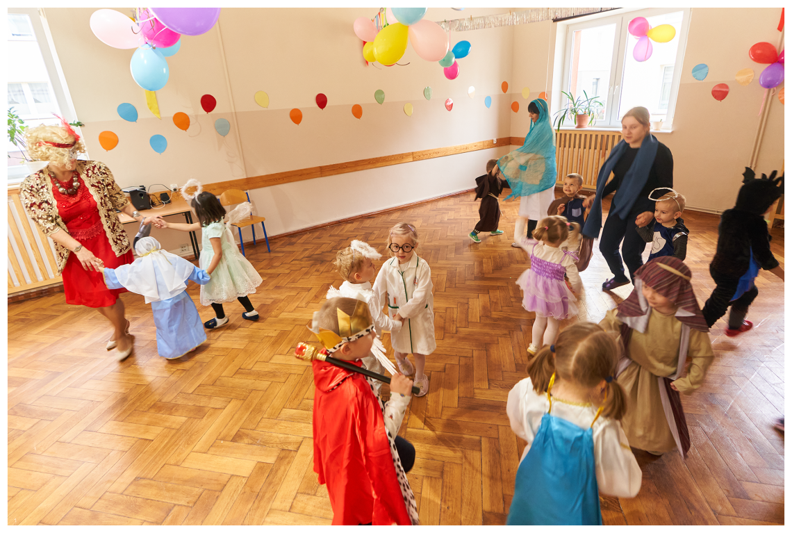 Rodzice bardzo mocno zaangażowali się w przygotowanie strojów. Panie Przedszkolanki starannie zadbały o oprawę balu. Wszystkim zależało, aby maluchy czuły się wyjątkowo w dniu kiedy można w taki radosny sposób wyrazić wdzięczność za całe rzesze niebiańskich patronów.